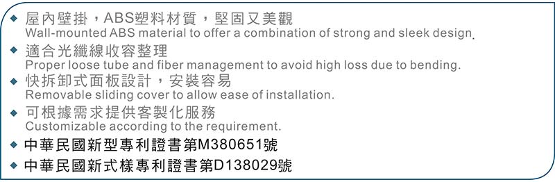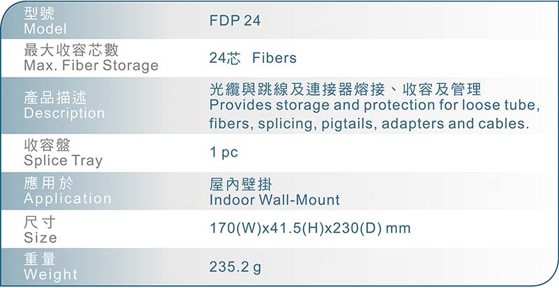 Wall-Mount Fiber Distribution Panel (WM-FDP24) HOME PRODUCT PON Products Wall-Mount Fiber Distrubuion Wall-Mount Fiber Distribution Panel (WM-FDP24) WM FDP 24 Description Specifications